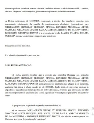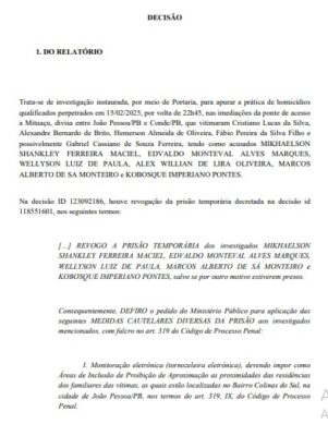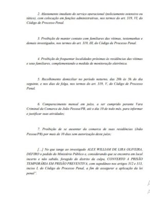 No lugar da tornozeleira, os PMs deverão cumprir medidas cautelares, como comparecimento mensal à Justiça, proibição de contato com envolvidos no processo, restrição de saída de João Pessoa e afastamento das atividades operacionais.